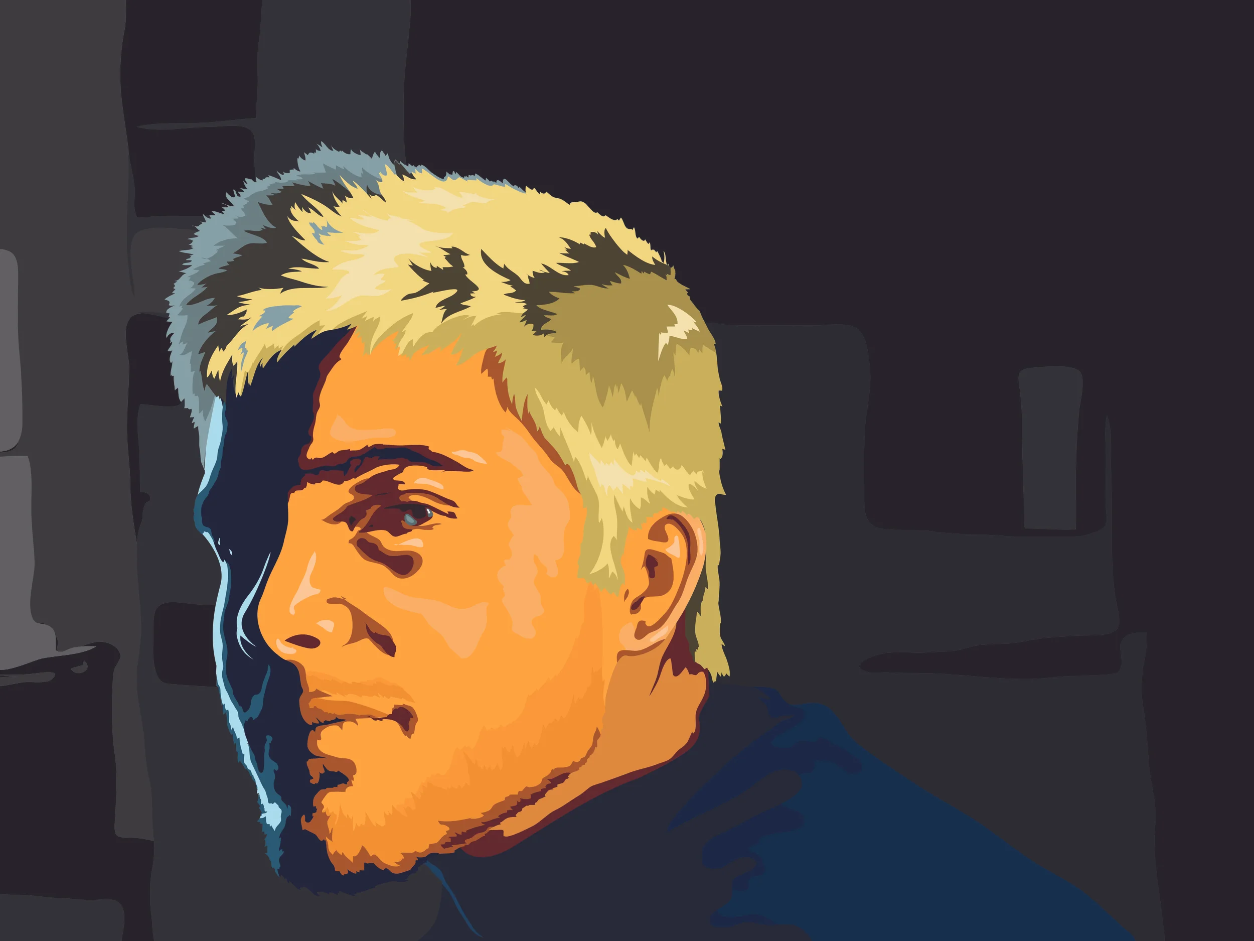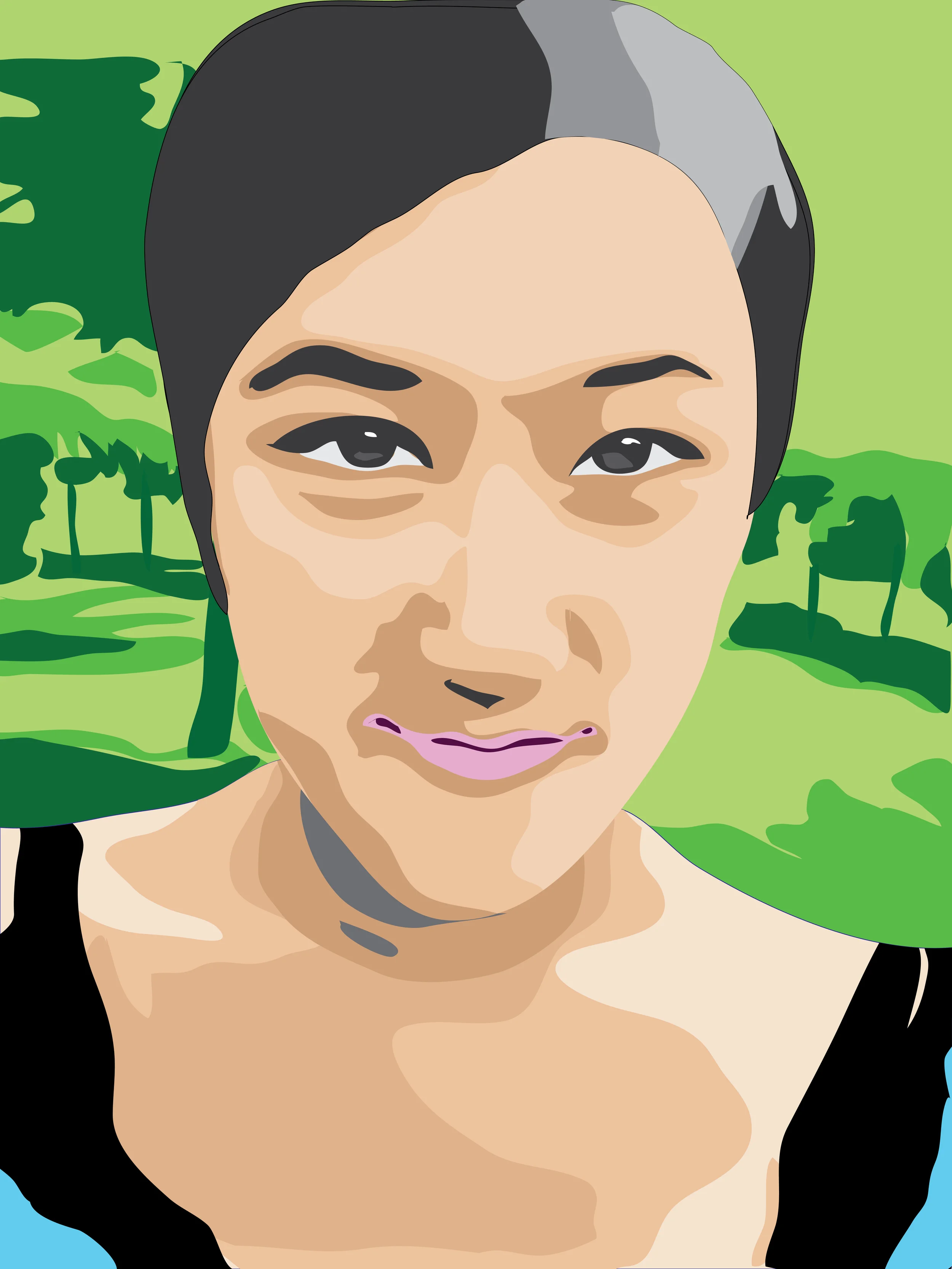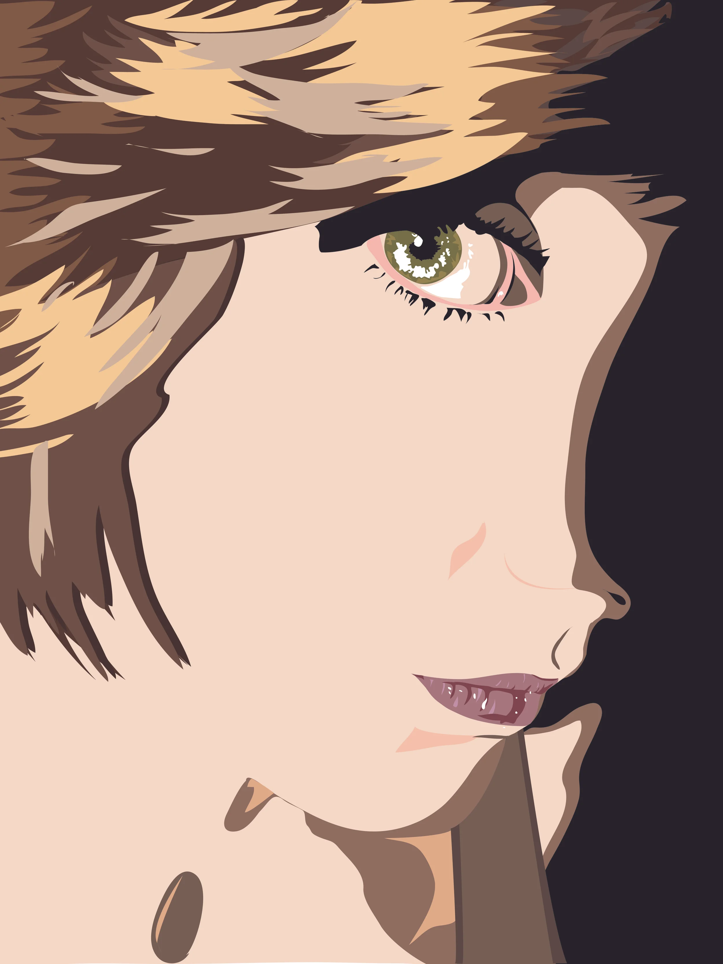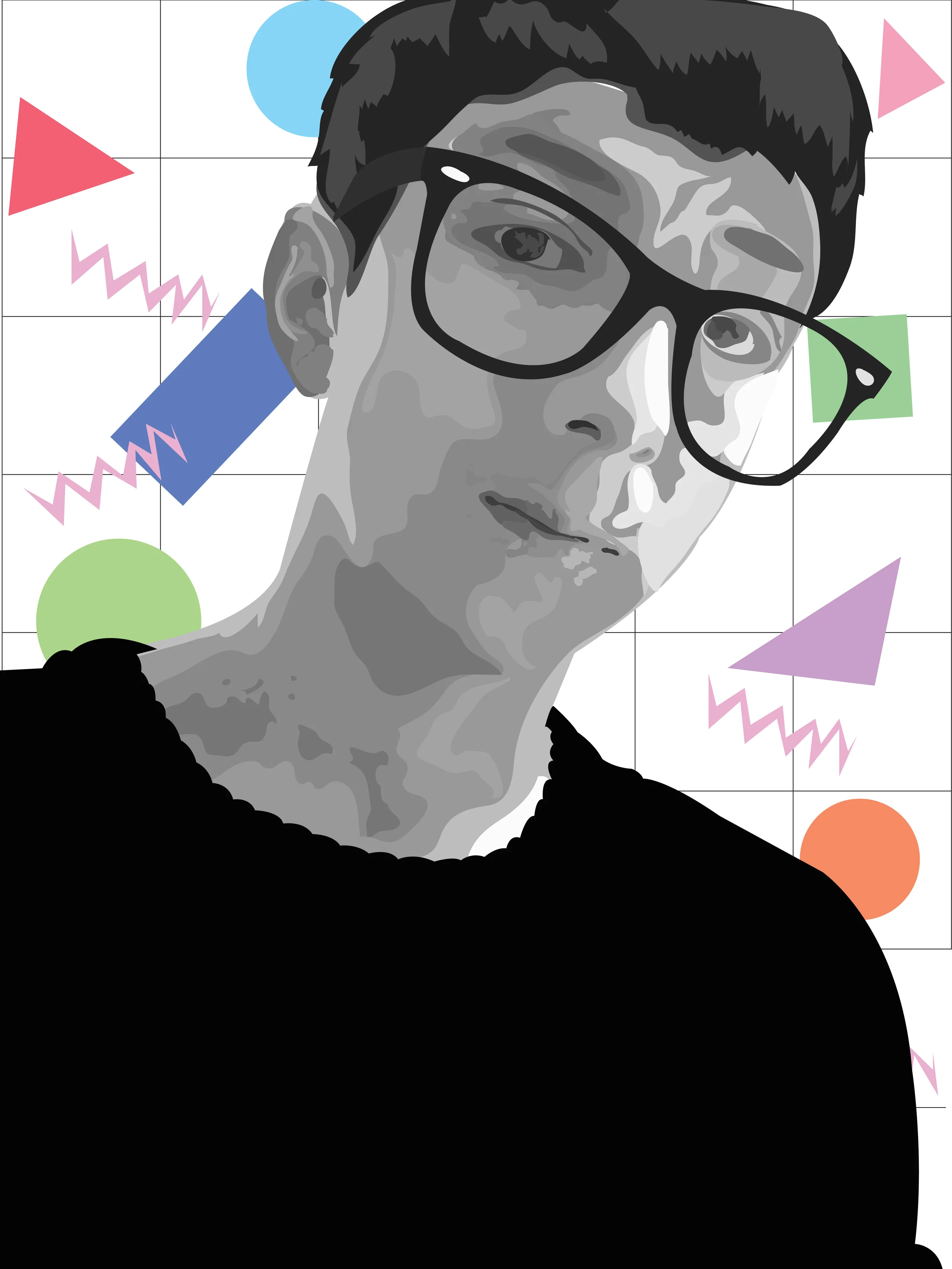 Adobe Illustrator Exercise - Using the pen, pencil, and/or basic shape tools, create a vector self-portrait. The final image will consist exclusively of fill, no strokes. A successful project will accurately create the illusion of volume and depth. File dimensions: 18 inches by 24 inches.